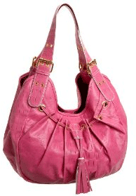 If Carrie's (Sarah Jessica Parker) pink Christian Louboutin handbag in Sex and the City 2 is not within your budget - $1,795 - eeeek! You can buy the Chinese Laundry's Dolly Hobo at Endless.com for much less! It is currently on sale for $77.38, regularly $95. The look has nonchalant slouch to spare, with tassel-accented, draw-stringed grommets that create feminine gathers. The subtle croc print adds a touch of class.