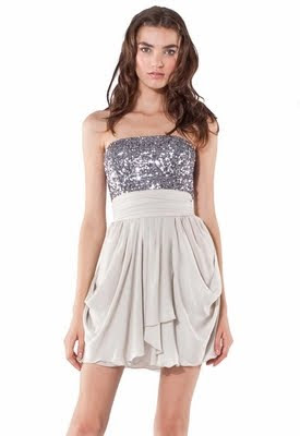 Alice + Olivia Maggie Strapless Sequin Dress with Draped Skirt in Stone $484
