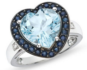 "Wrap your finger in true elegance all the while fulfilling your romantic side. Showcasing a dazzling blue topaz centerpiece in the beloved shape of a heart, this beautiful white gold ring also features several deep blue sapphires and two icy-hued diamonds. A magnificent design that is the perfect jewelry accessory for momentous occasions - especially when love is in the air!"